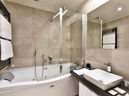 Le Suites sono mini appartamenti di 50 mq finemente arredati dove troverete, oltre alla camera, un ampio salotto con annesso angolo cottura ed accesso a giardino privato attrezzato. L'ampia sala bagno è dotata di vasca idromassaggio Jacuzzi o di una spaziosa doccia, ricco set di cortesia e asciugacapelli.